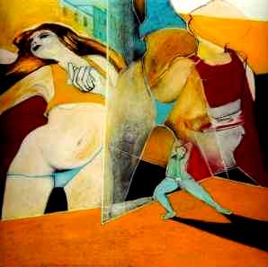 "The Glass Room" oil and pastels on canvas 60 x 60 inches |