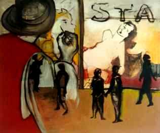 "Bar Scene" oil and pastels on canvas 24 x 36 inches |